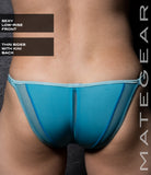 Features a extremely sexy minimal coverage front with sporty panelling and stripes! Paired with thin sides and a sexy kini back, this is guaranteed to turn heads wherever you go!