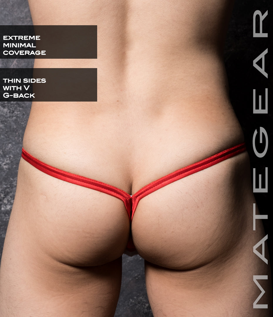 Features a extremely minimal coverage front pouch with thin sides. Paired with a V-back G design, this is guaranteed to turn heads wherever you go!