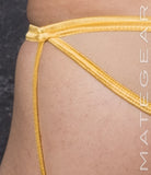 Features an folded fabric front with open panels back! Show off at the pool or beach today with the skimpiest swimwear around!