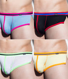 Features a anatomically shaped front pouch and reduced short split sides for a comfortable and sexy look. Designed with duo-color waistband with contrast piping for extra detailing.